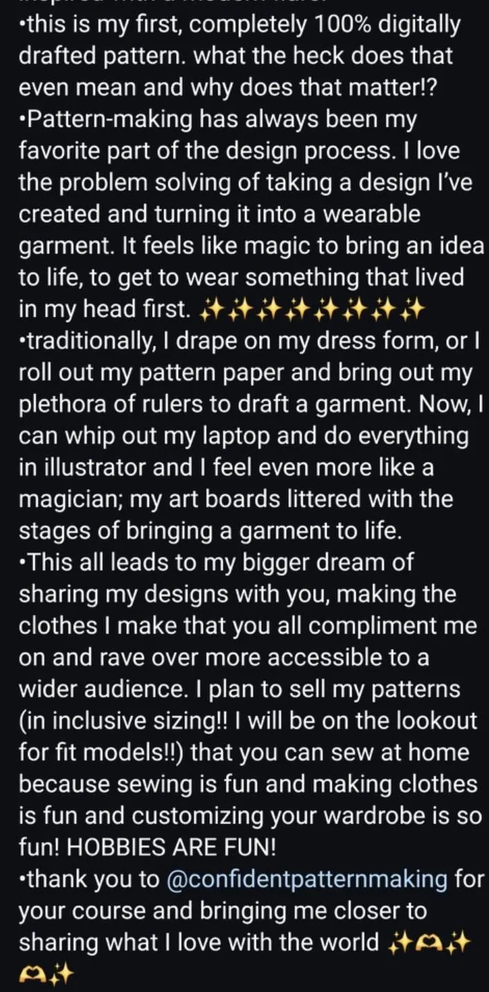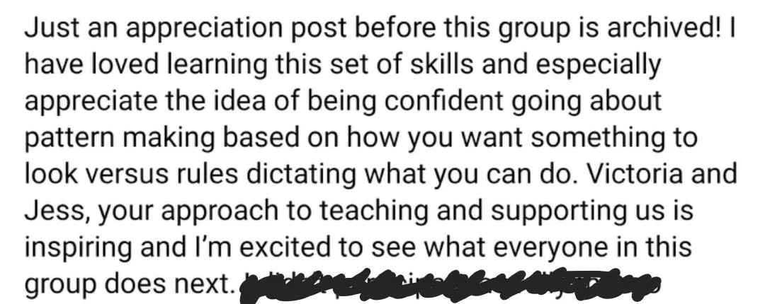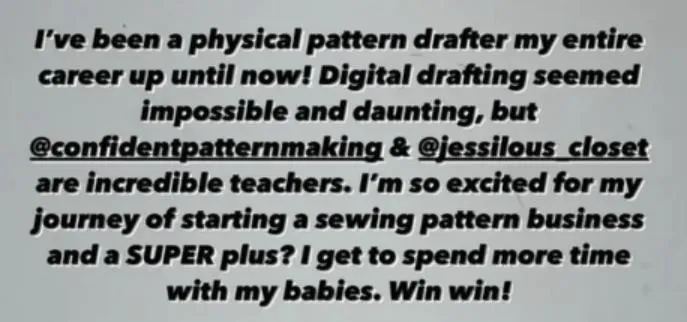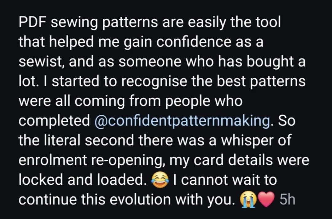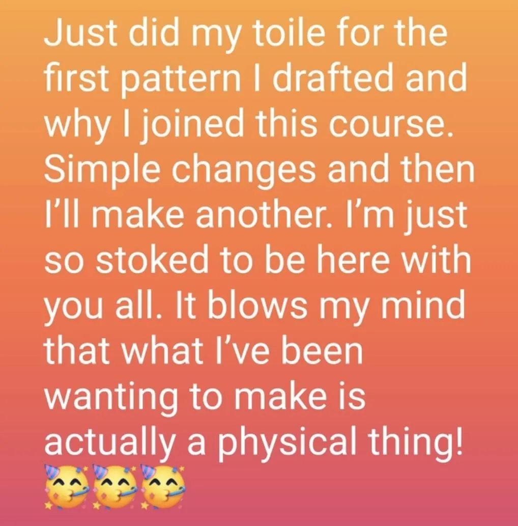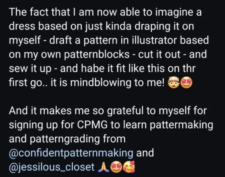 Many of our students have gone on to launch successful sewing pattern brands, start custom clothing businesses, and build careers as freelance patternmakers using the skills they gained here.