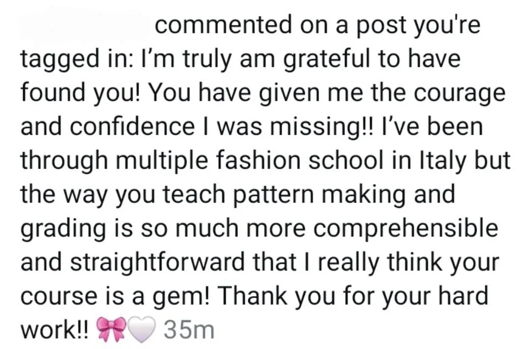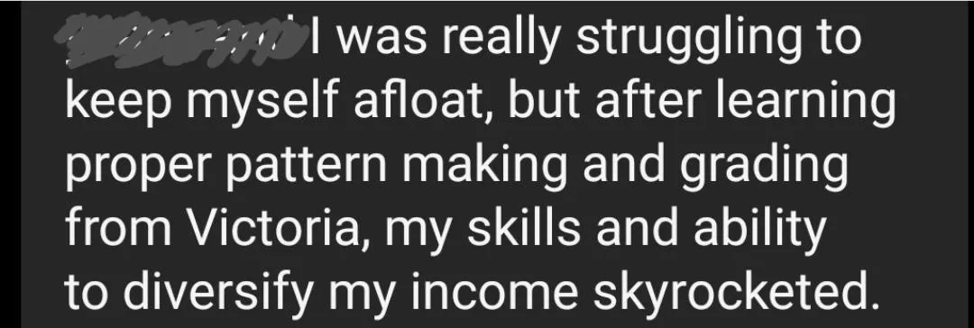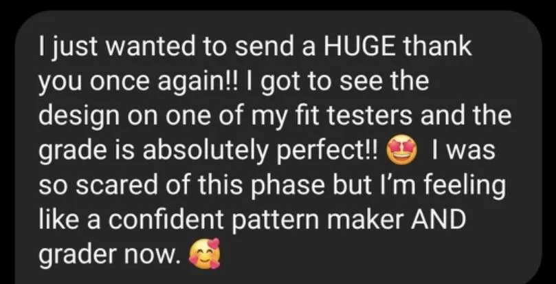 Of course, your results depend on the effort you put in. While we can’t guarantee you’ll become a successful designer just by enrolling, we can guarantee that if you dedicate time and energy to the course, you’ll finish with a strong, practical understanding of pattern drafting and grading.