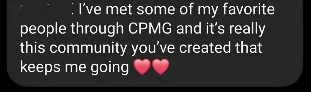 Joining CPMG is a commitment to yourself, and we encourage you to start when the timing feels right. Like most things, the more you put in, the more you’ll get out—but we’ve designed our support to be flexible. You can drop in whenever you need help, no matter where you’re at in the process.